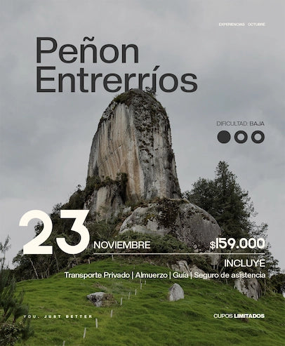 Reserva tu CupoDisfruta una experiencia de senderismo en el Peñón de Entrerríos – Antioquia, una formación rocosa con vistas panorámicas de 360° del norte antioqueño. Este recorrido fácil de 8 km es perfecto para compartir en familia o con amigos, ideal para niños mayores de 8 años. Durante la caminata disfrutarás de montañas, praderas y el canto de las aves andinas mientras conectas con la tranquilidad del paisaje rural. Incluye transporte privado desde Medellín, guías expertos, almuerzo típico y seguro médico, todo pensado para vivir una experiencia natural, cómoda y segura. Reserva Tu Cupo.